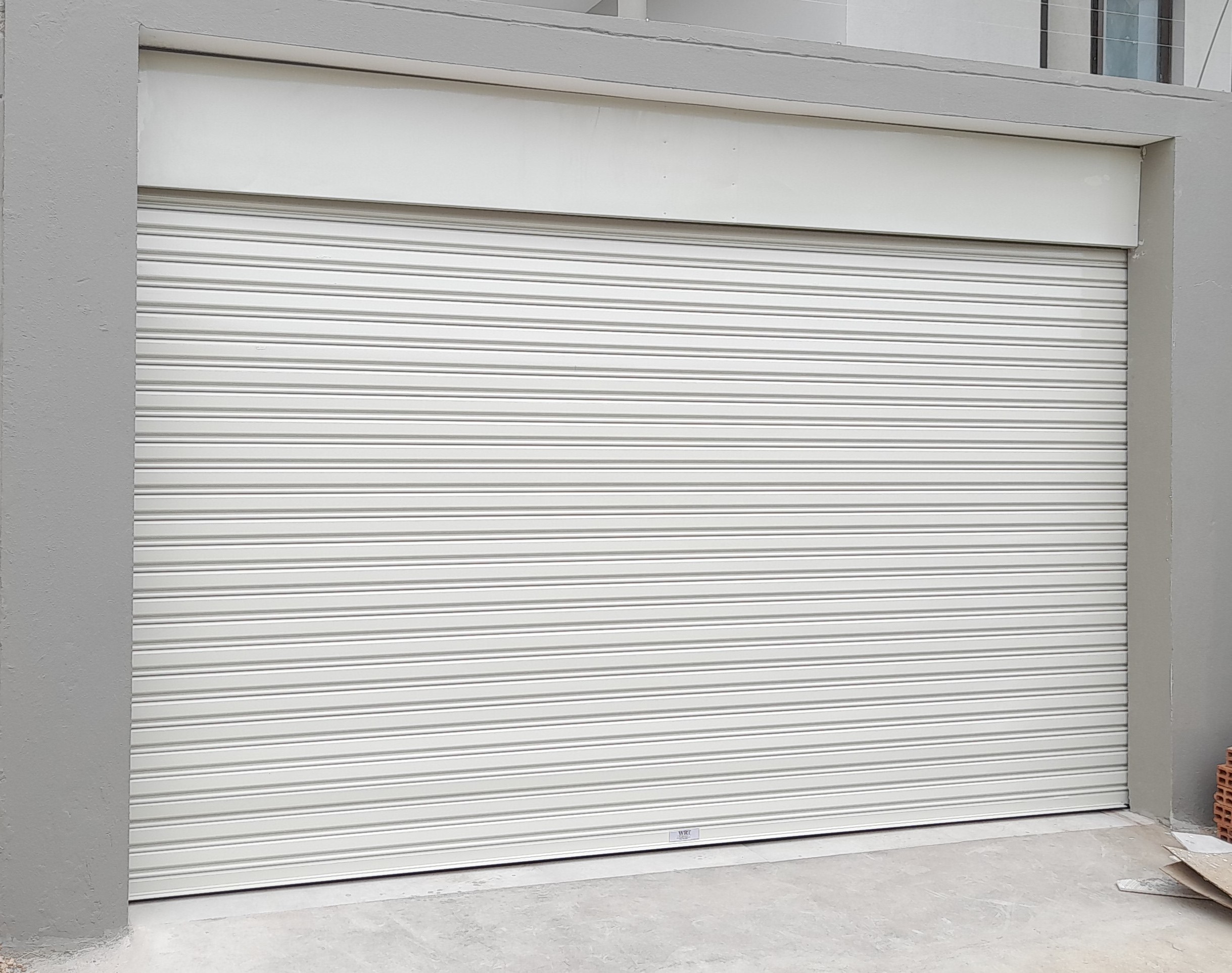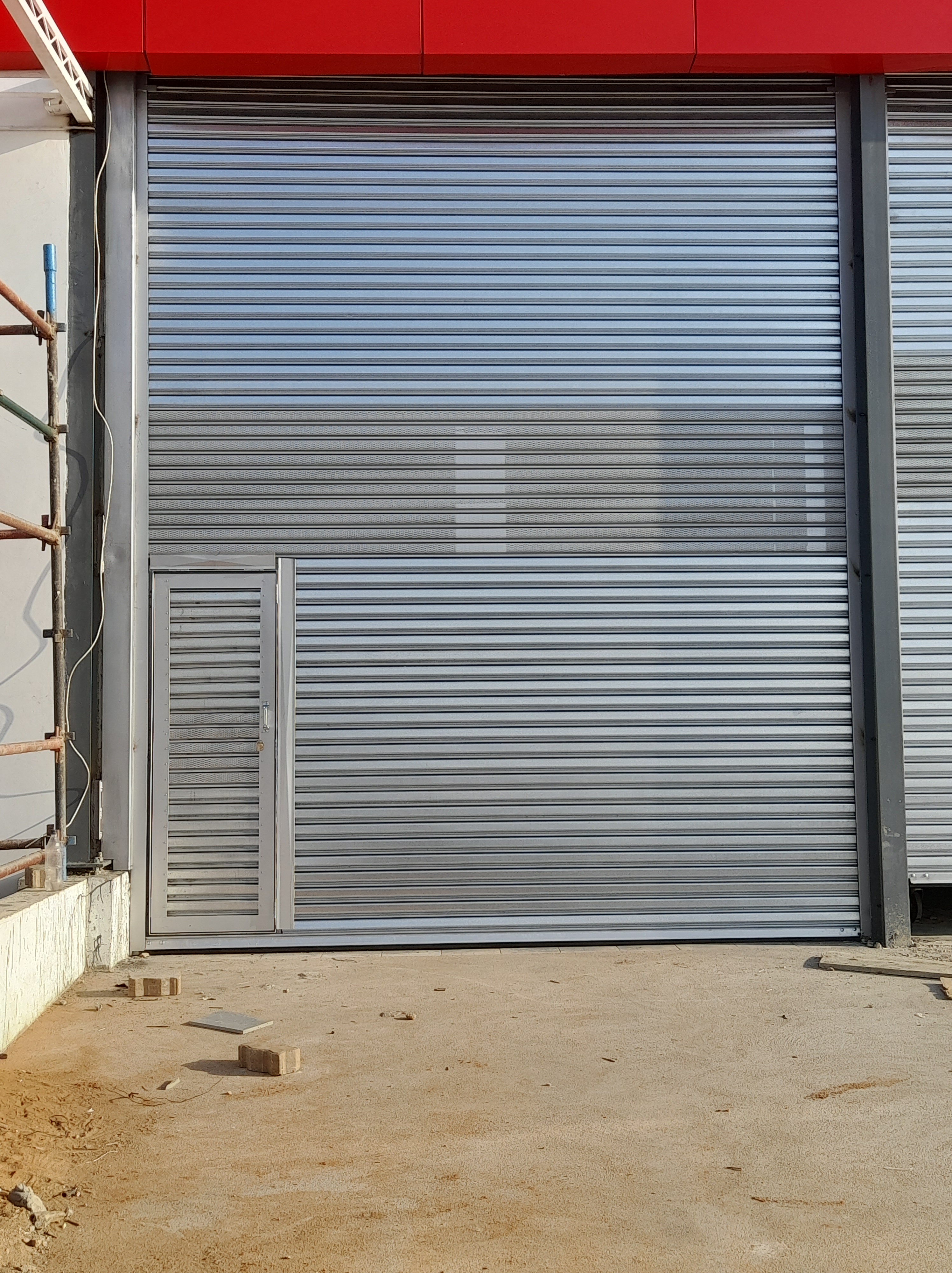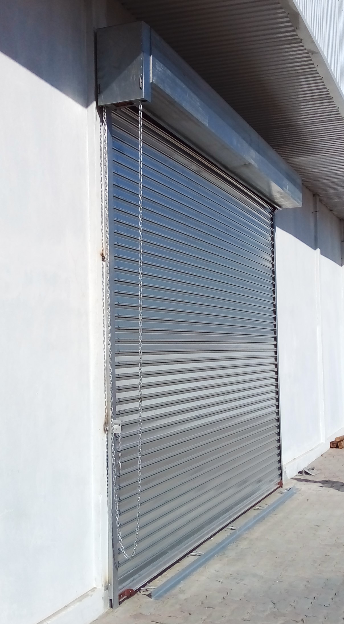 - Our standard roller shutter door comes with galvanized slats and the rest of the mechanism which is steal, is coated with a primer and finished with an Aluminium coating to give it a good resistance against the coastal environment.